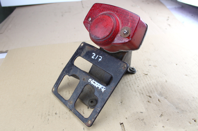 Gebrauchter Rücklichthalter einer Honda CB 200 B oder G - ohne Blinkerhalter. Guter Zustand - Lack sollte neu - inkl. Rücklicht, Glas aber mit Sprung.