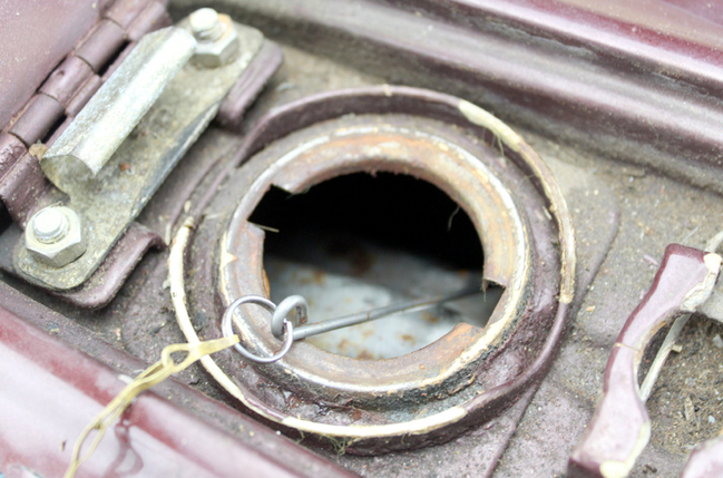 Der Tank ist dicht und hat innen nur wenig Rost - im oberen Teil ein wenig mehr und unten so gut wie nicht, da er während der Lagerung mit Benzin gefüllt war. Inkl. Klappe oben - mit Schloss, aber ohne Schlüssel (Hondaschlüssel passen). Der Lack muss neu, blättert z.T. ab - ansonsten hat der Tank keine Dellen oder Beulen. Der Benzinhahn ist noch montiert und funktioniert.